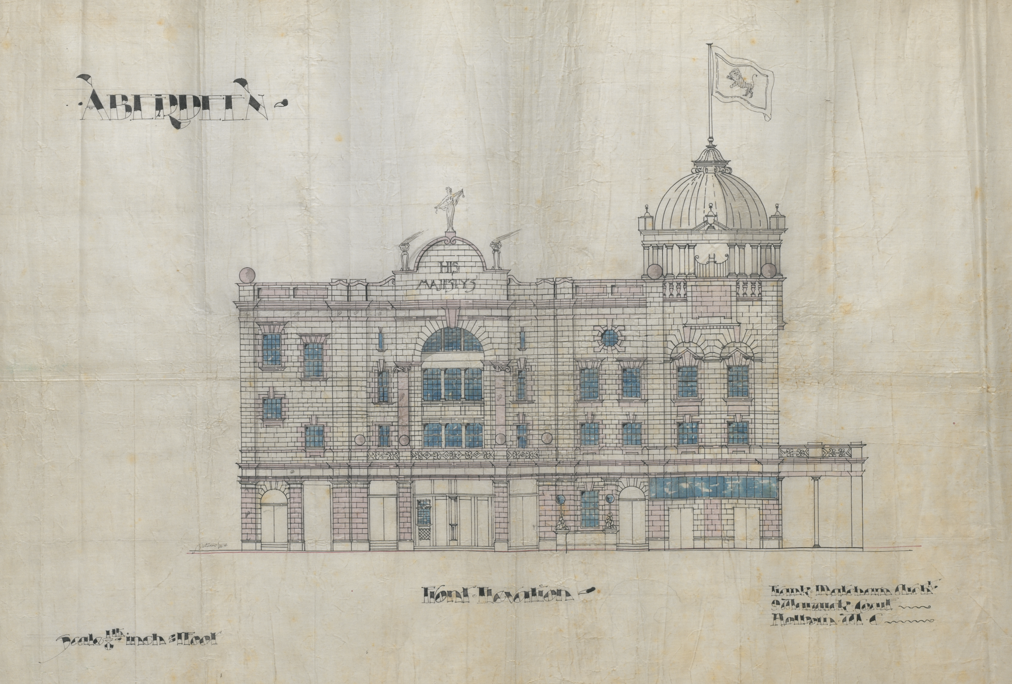 With an audience capacity of 1,400 people, the category-A listed His Majesty’s Theatre is the largest theatre in the North-East of Scotland. Built at a cost of £35,000 and opened in 1906, it is still in use today and is one of Aberdeen’s most iconic buildings. The architect responsible for the plans of the theatre was Francis (or Frank) Matcham who specialised in the design of many well-known theatres and music halls, including the Hackney Empire, the Coliseum and the Palladium in London, as well as the Tower Ballroom, Blackpool.