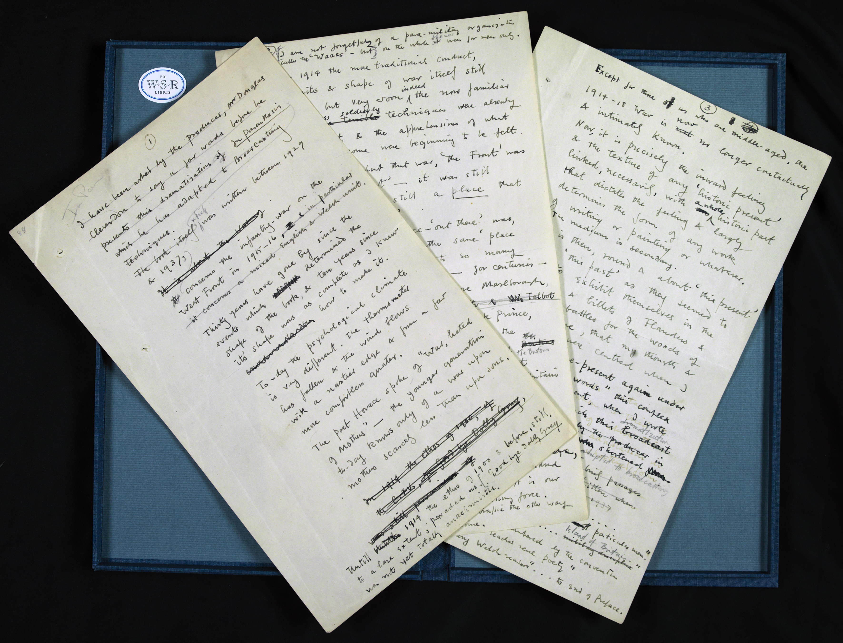 Both items have now been catalogued and are available to be read in the Library’s reading room. The proof copy and the radio introduction have the reference numbers NLW MS 24193B and NLW MS 24194E respectively.